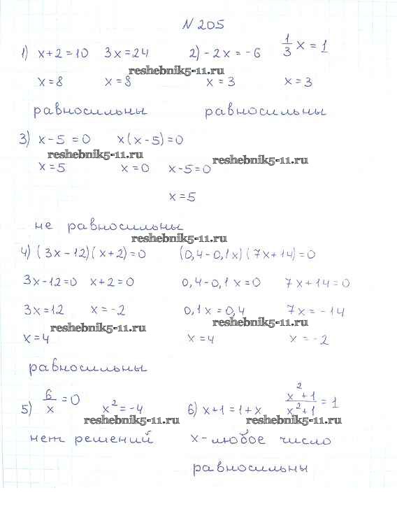 Готовая домашняя работа с ответами по Алгебре за 8 класс Мерзляк, Полонский, Якир Учебник Алгоритм успеха Вентана-граф 2016 ФГОС - §7. Равносильные уравнения. Рациональные уравнения 205
