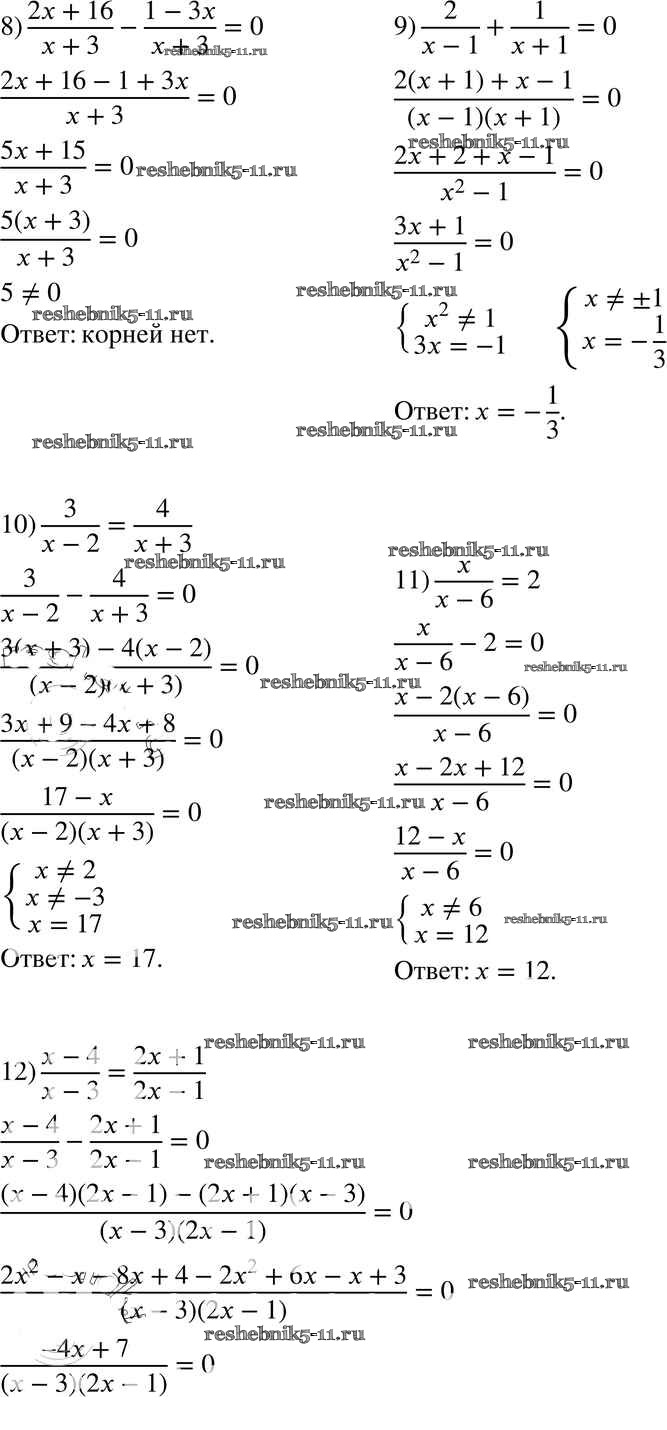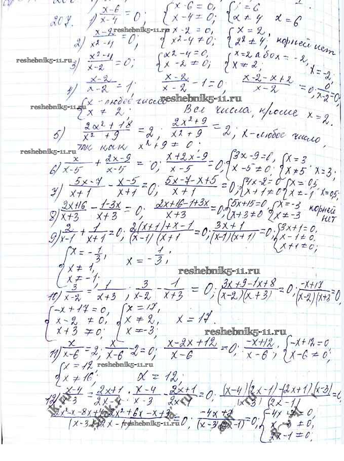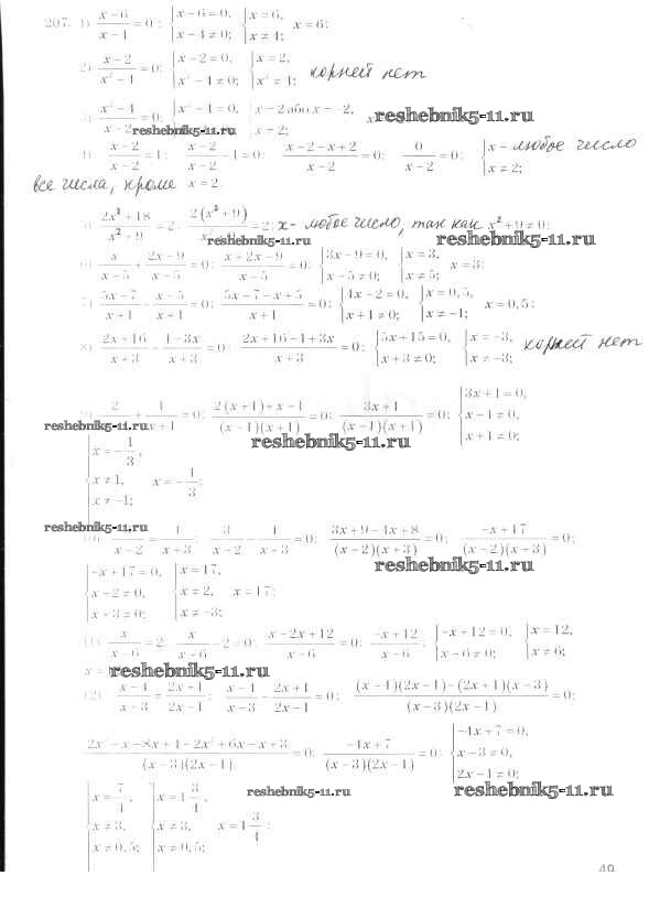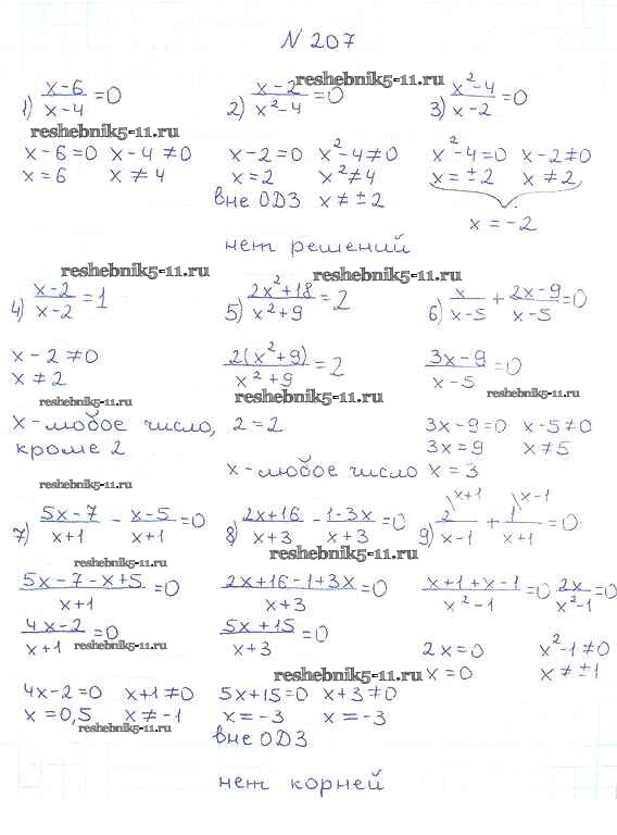 Готовая домашняя работа с ответами по Алгебре за 8 класс Мерзляк, Полонский, Якир Учебник Алгоритм успеха Вентана-граф 2016 ФГОС - §7. Равносильные уравнения. Рациональные уравнения 207