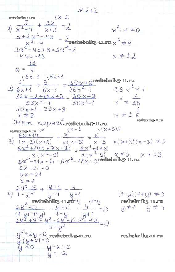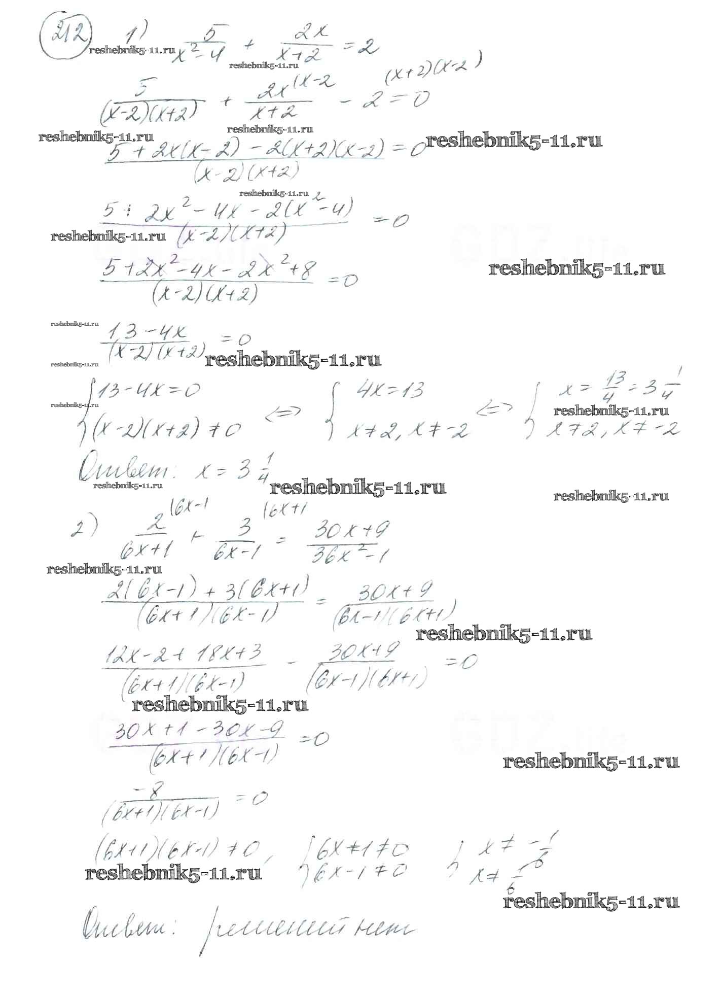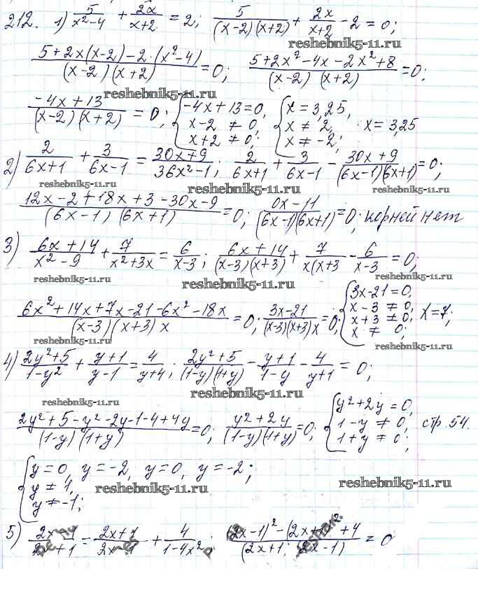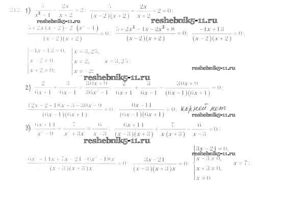 Готовая домашняя работа с ответами по Алгебре за 8 класс Мерзляк, Полонский, Якир Учебник Алгоритм успеха Вентана-граф 2016 ФГОС - §7. Равносильные уравнения. Рациональные уравнения 212
