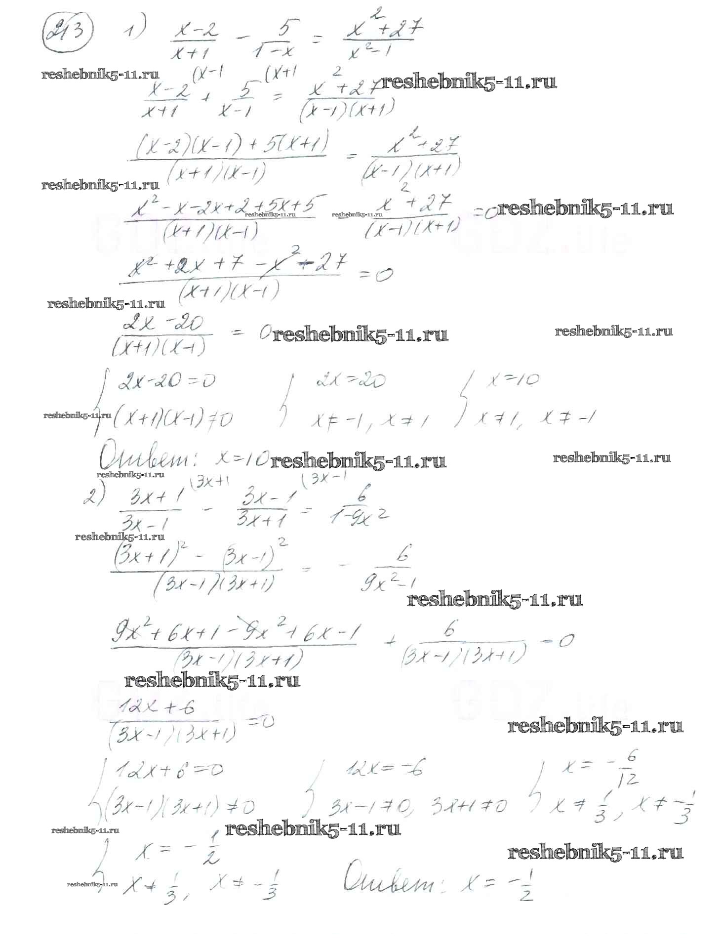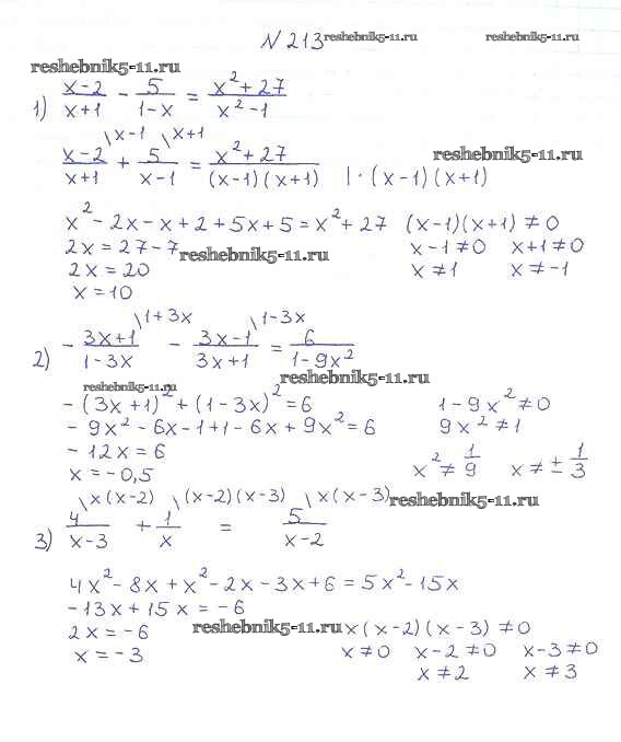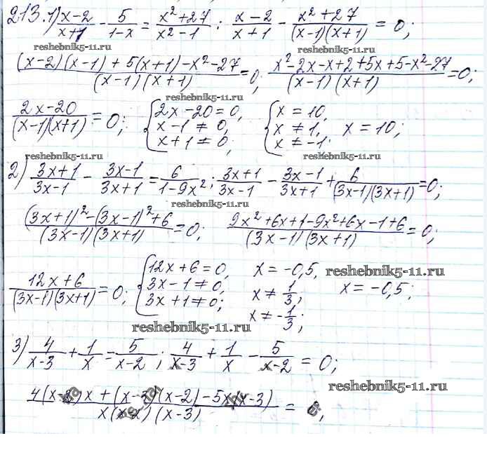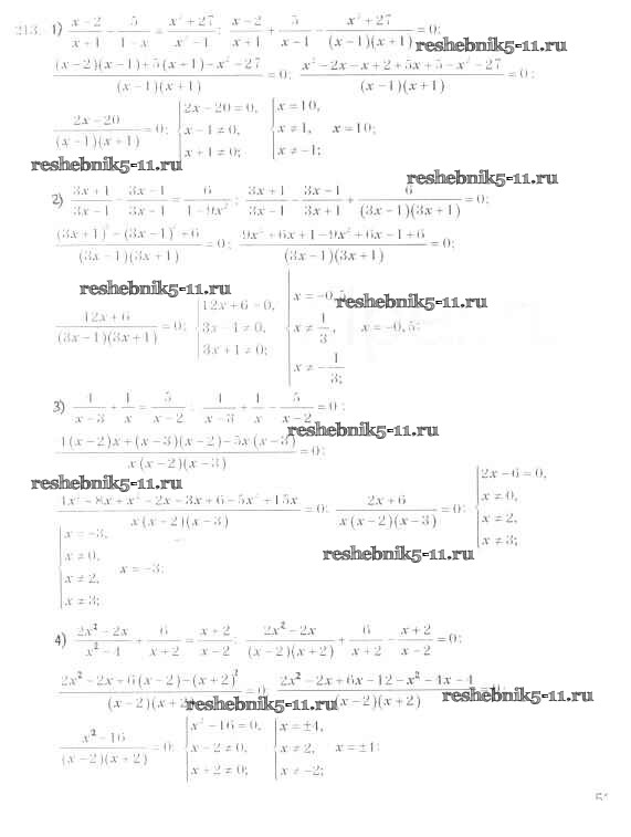 Готовая домашняя работа с ответами по Алгебре за 8 класс Мерзляк, Полонский, Якир Учебник Алгоритм успеха Вентана-граф 2016 ФГОС - §7. Равносильные уравнения. Рациональные уравнения 213