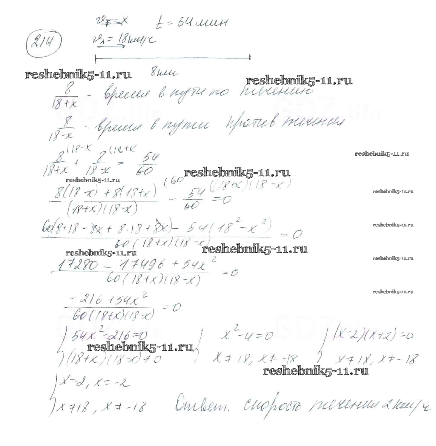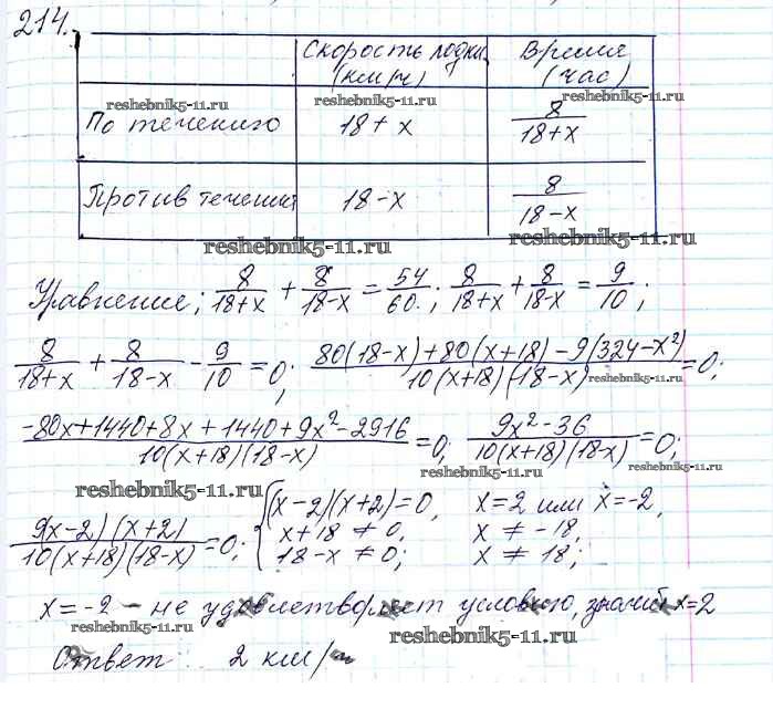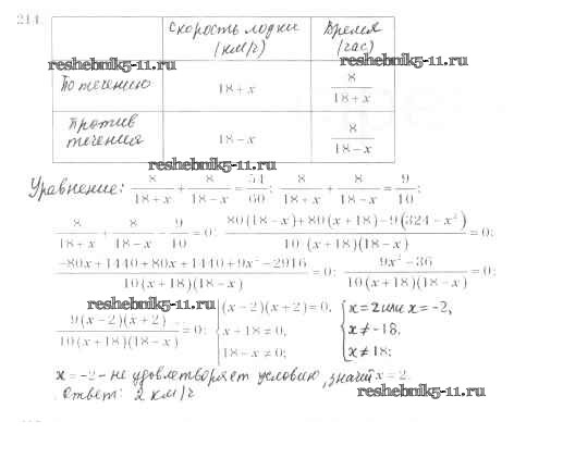 Готовая домашняя работа с ответами по Алгебре за 8 класс Мерзляк, Полонский, Якир Учебник Алгоритм успеха Вентана-граф 2016 ФГОС - §7. Равносильные уравнения. Рациональные уравнения 214