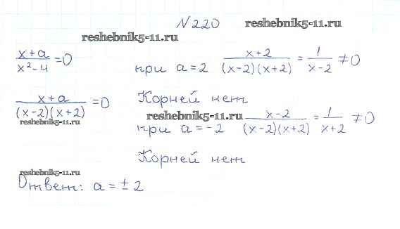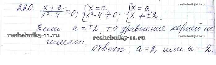 Готовая домашняя работа с ответами по Алгебре за 8 класс Мерзляк, Полонский, Якир Учебник Алгоритм успеха Вентана-граф 2016 ФГОС - §7. Равносильные уравнения. Рациональные уравнения 220