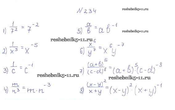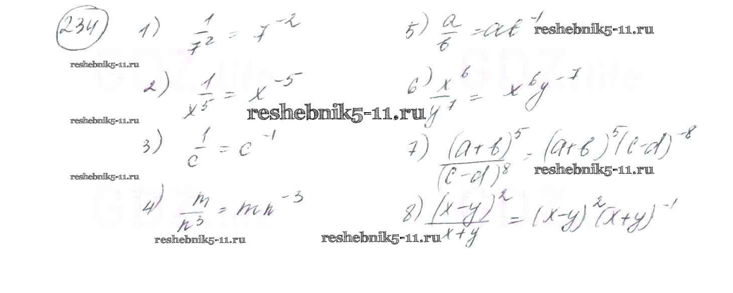 Готовая домашняя работа с ответами по Алгебре за 8 класс Мерзляк, Полонский, Якир Учебник Алгоритм успеха Вентана-граф 2016 ФГОС - §8. Степень с целым отрицательным показателем 234