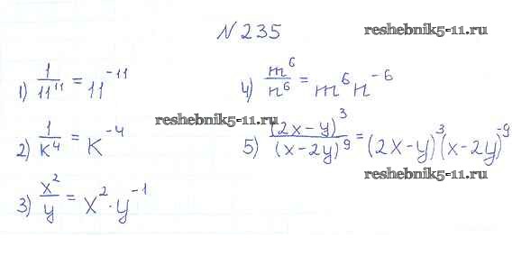 Готовая домашняя работа с ответами по Алгебре за 8 класс Мерзляк, Полонский, Якир Учебник Алгоритм успеха Вентана-граф 2016 ФГОС - §8. Степень с целым отрицательным показателем 235
