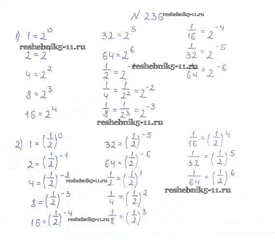 Готовая домашняя работа с ответами по Алгебре за 8 класс Мерзляк, Полонский, Якир Учебник Алгоритм успеха Вентана-граф 2016 ФГОС - §8. Степень с целым отрицательным показателем 236