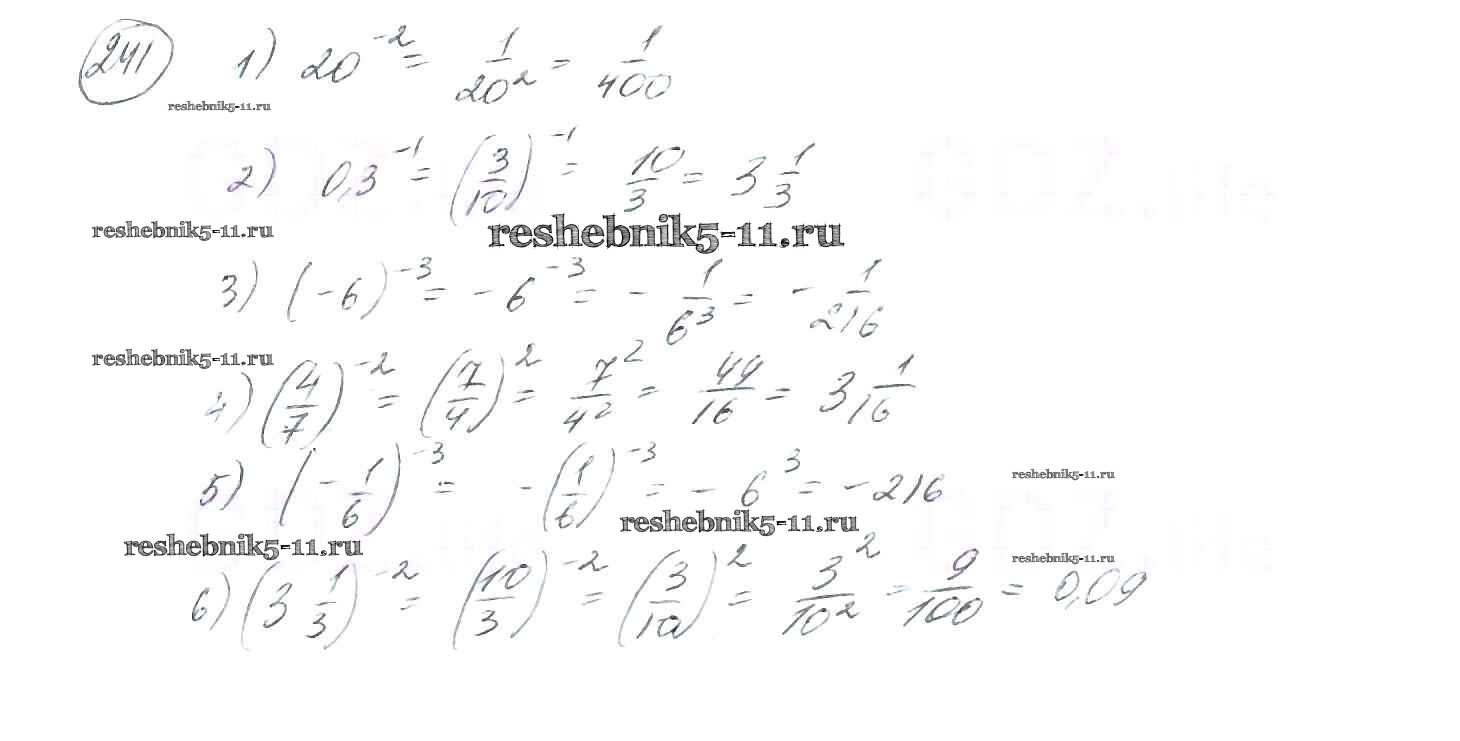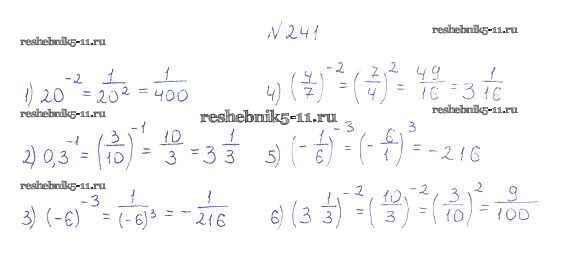 Готовая домашняя работа с ответами по Алгебре за 8 класс Мерзляк, Полонский, Якир Учебник Алгоритм успеха Вентана-граф 2016 ФГОС - §8. Степень с целым отрицательным показателем 241