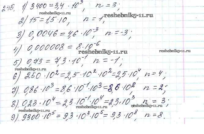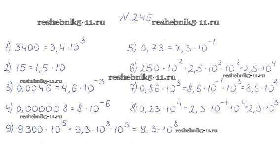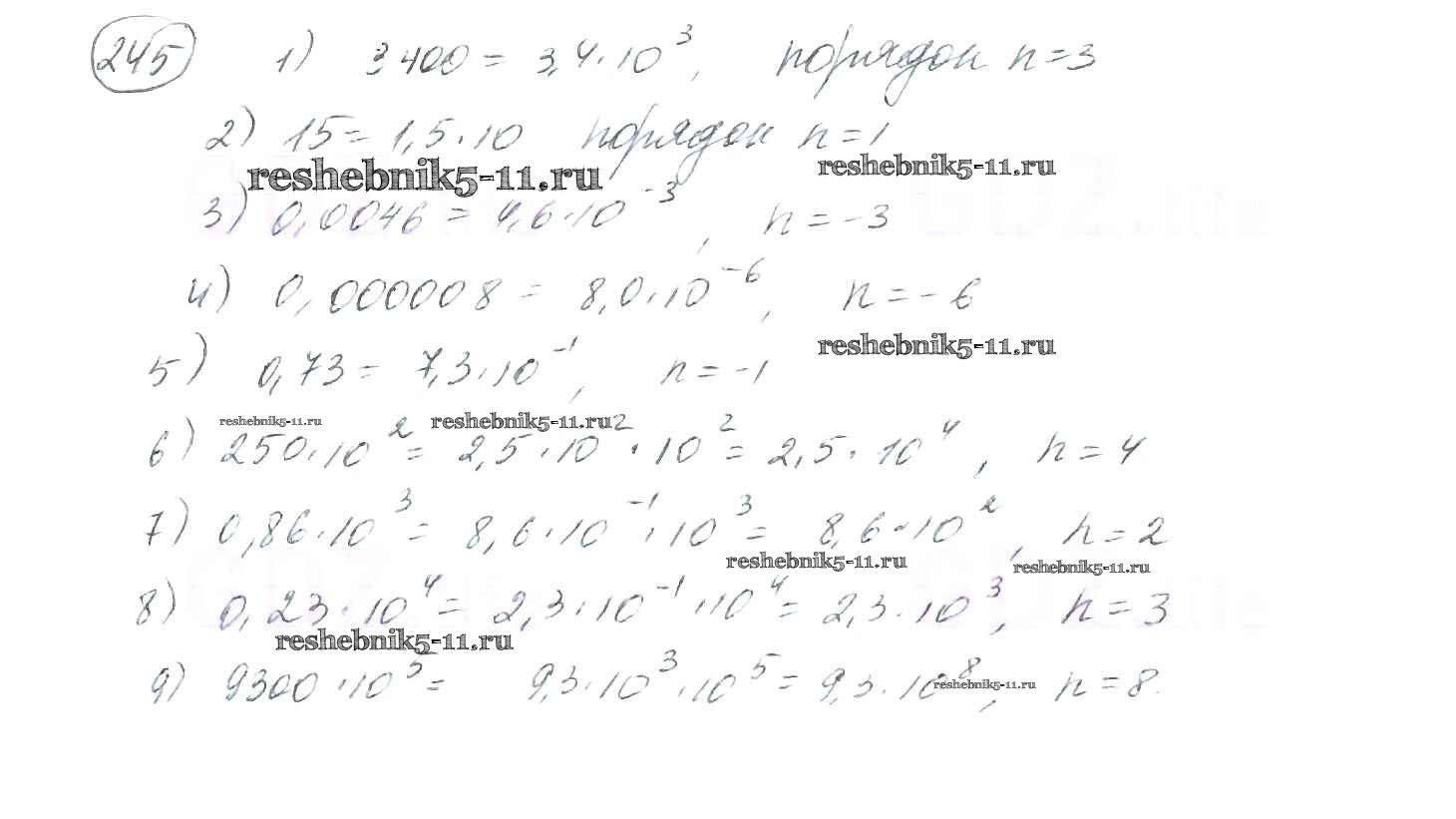 Готовая домашняя работа с ответами по Алгебре за 8 класс Мерзляк, Полонский, Якир Учебник Алгоритм успеха Вентана-граф 2016 ФГОС - §8. Степень с целым отрицательным показателем 245