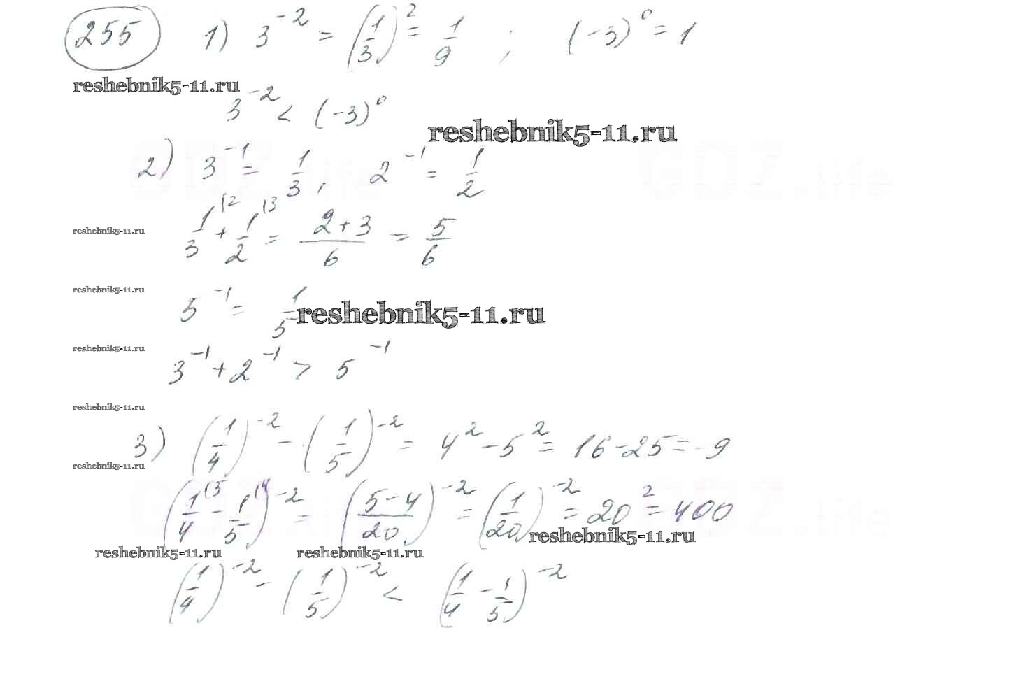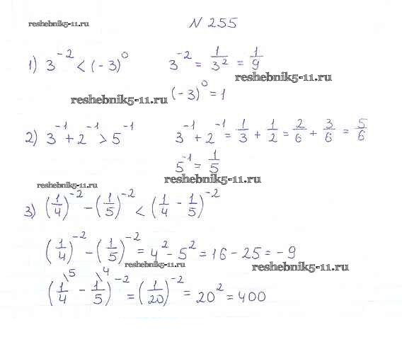 Готовая домашняя работа с ответами по Алгебре за 8 класс Мерзляк, Полонский, Якир Учебник Алгоритм успеха Вентана-граф 2016 ФГОС - §8. Степень с целым отрицательным показателем 255