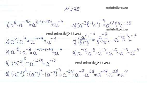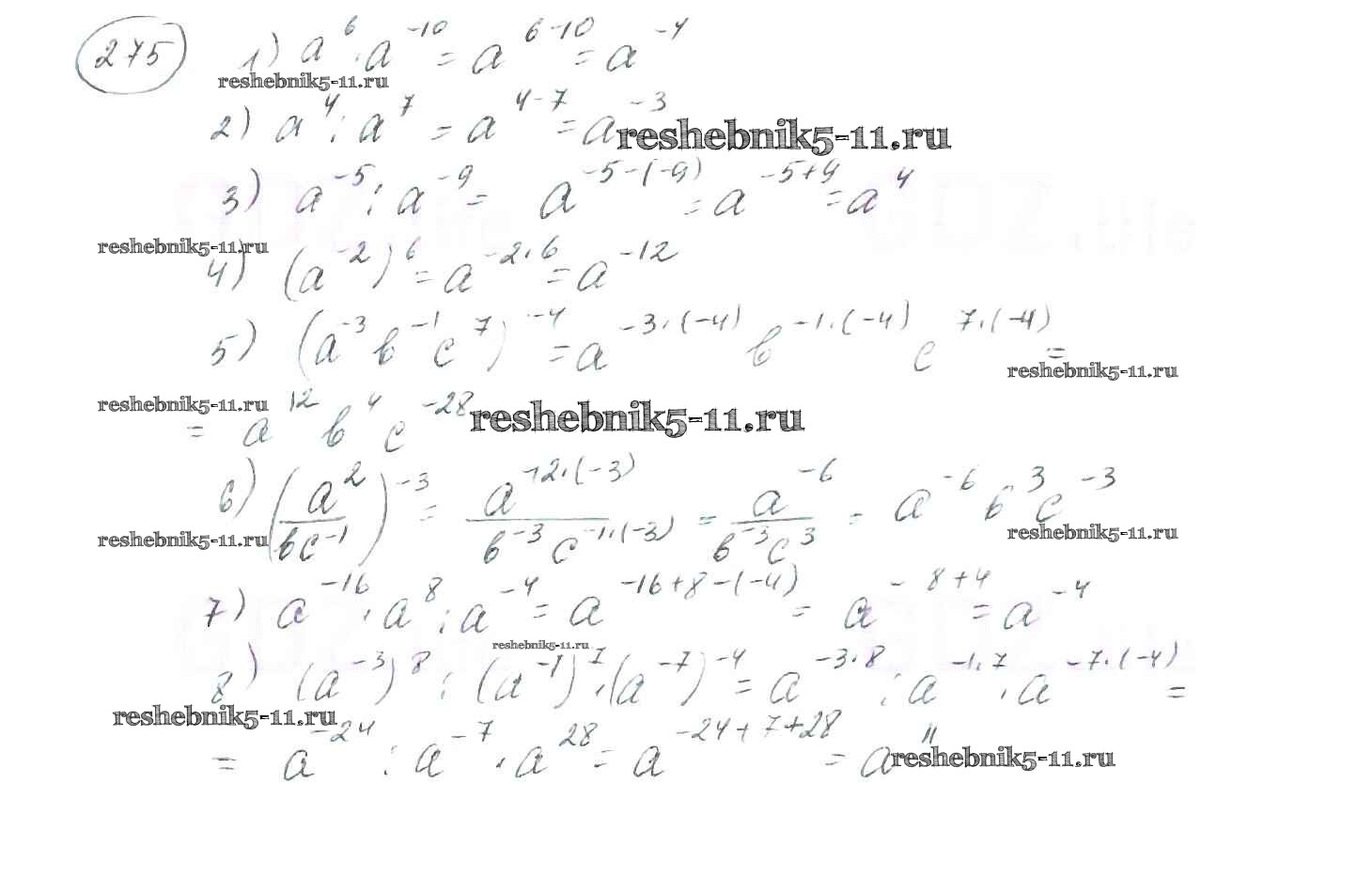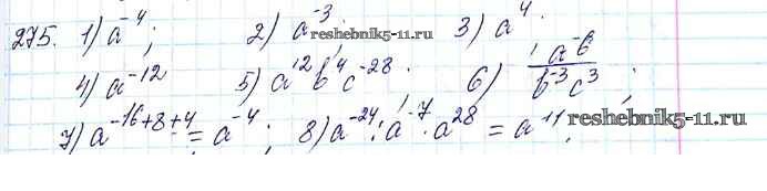 Готовая домашняя работа с ответами по Алгебре за 8 класс Мерзляк, Полонский, Якир Учебник Алгоритм успеха Вентана-граф 2016 ФГОС - §9. Свойства степени с целым показателем 275
