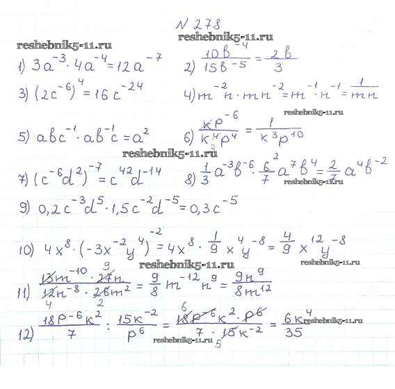Готовая домашняя работа с ответами по Алгебре за 8 класс Мерзляк, Полонский, Якир Учебник Алгоритм успеха Вентана-граф 2016 ФГОС - §9. Свойства степени с целым показателем 278