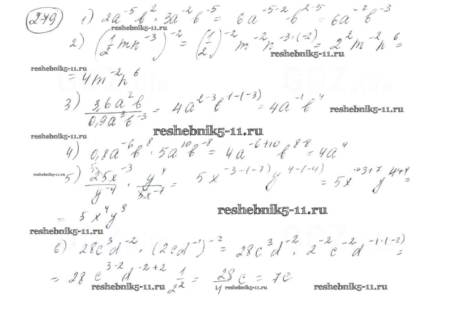 Готовая домашняя работа с ответами по Алгебре за 8 класс Мерзляк, Полонский, Якир Учебник Алгоритм успеха Вентана-граф 2016 ФГОС - §9. Свойства степени с целым показателем 279