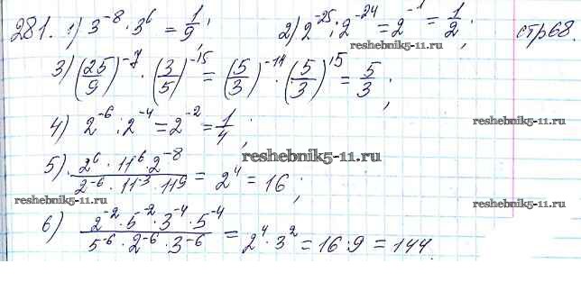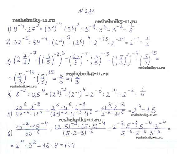 Готовая домашняя работа с ответами по Алгебре за 8 класс Мерзляк, Полонский, Якир Учебник Алгоритм успеха Вентана-граф 2016 ФГОС - §9. Свойства степени с целым показателем 281