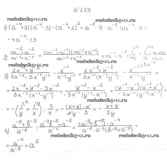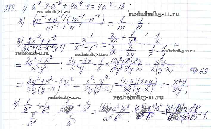 Готовая домашняя работа с ответами по Алгебре за 8 класс Мерзляк, Полонский, Якир Учебник Алгоритм успеха Вентана-граф 2016 ФГОС - §9. Свойства степени с целым показателем 289
