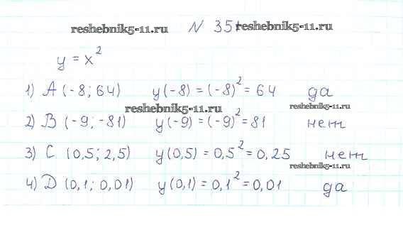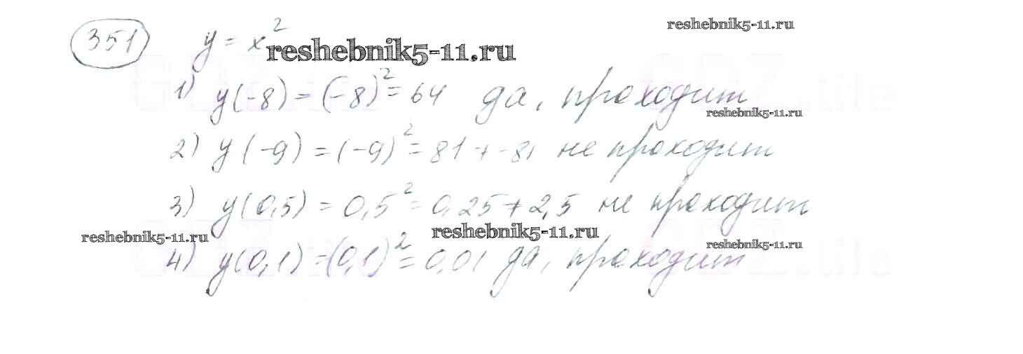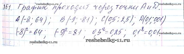 Готовая домашняя работа с ответами по Алгебре за 8 класс Мерзляк, Полонский, Якир Учебник Алгоритм успеха Вентана-граф 2016 ФГОС - §11. Функция y= x² 351