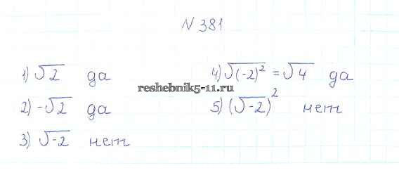Готовая домашняя работа с ответами по Алгебре за 8 класс Мерзляк, Полонский, Якир Учебник Алгоритм успеха Вентана-граф 2016 ФГОС - §12. Квадратные корни. Арифметический квадратный корень 381