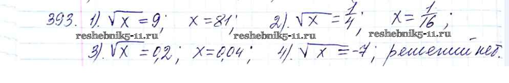Готовая домашняя работа с ответами по Алгебре за 8 класс Мерзляк, Полонский, Якир Учебник Алгоритм успеха Вентана-граф 2016 ФГОС - §12. Квадратные корни. Арифметический квадратный корень 393