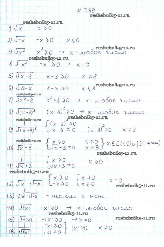 Готовая домашняя работа с ответами по Алгебре за 8 класс Мерзляк, Полонский, Якир Учебник Алгоритм успеха Вентана-граф 2016 ФГОС - §12. Квадратные корни. Арифметический квадратный корень 399