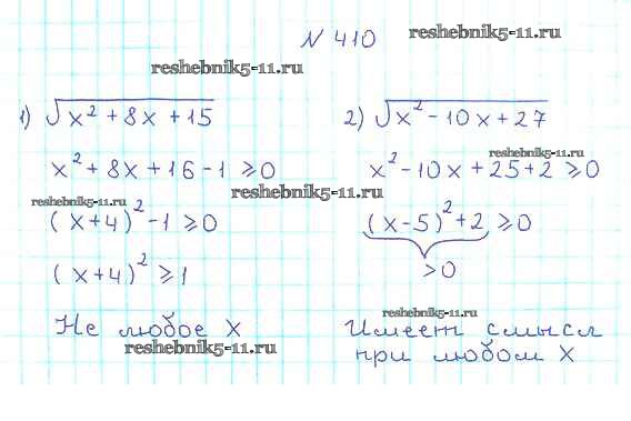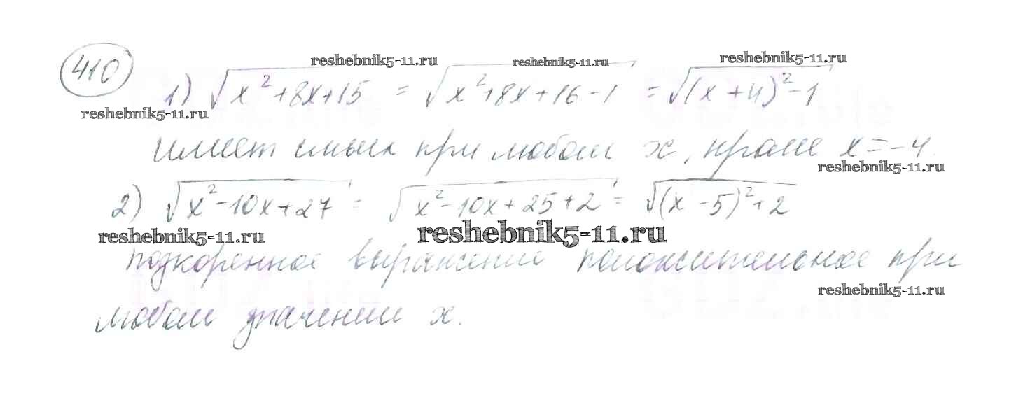 Готовая домашняя работа с ответами по Алгебре за 8 класс Мерзляк, Полонский, Якир Учебник Алгоритм успеха Вентана-граф 2016 ФГОС - §12. Квадратные корни. Арифметический квадратный корень 410