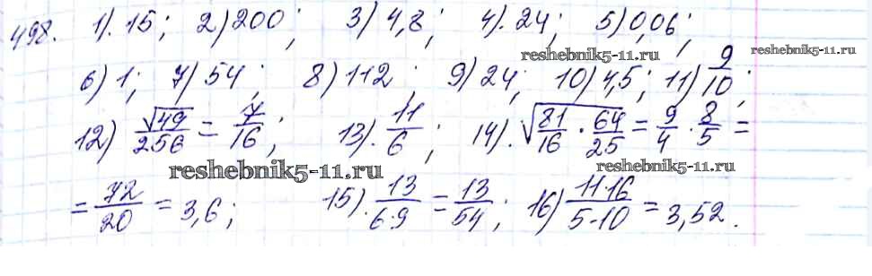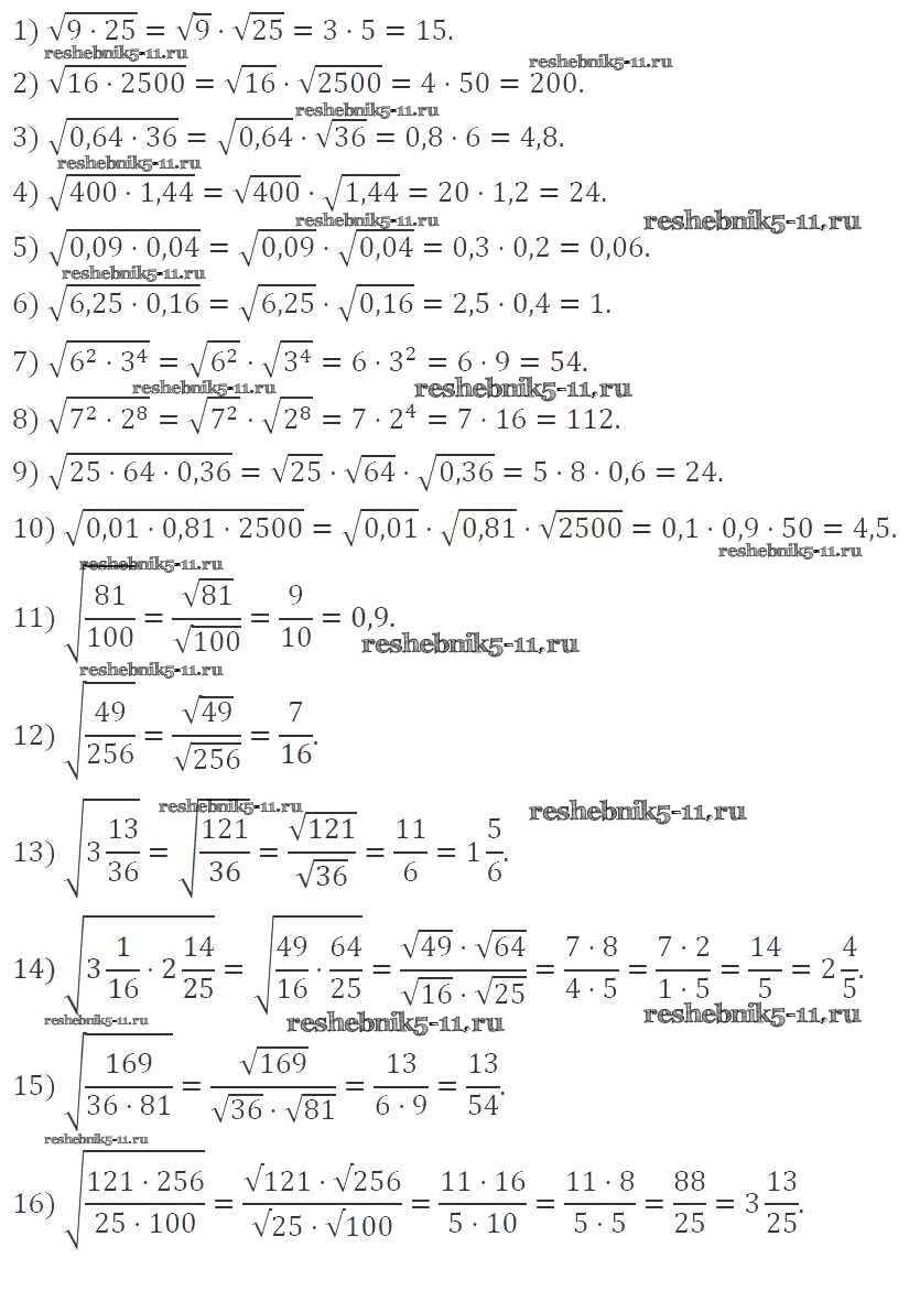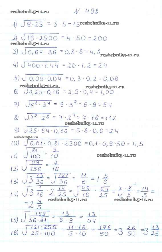 Готовая домашняя работа с ответами по Алгебре за 8 класс Мерзляк, Полонский, Якир Учебник Алгоритм успеха Вентана-граф 2016 ФГОС - §16. Свойства арифметического квадратного корня 498