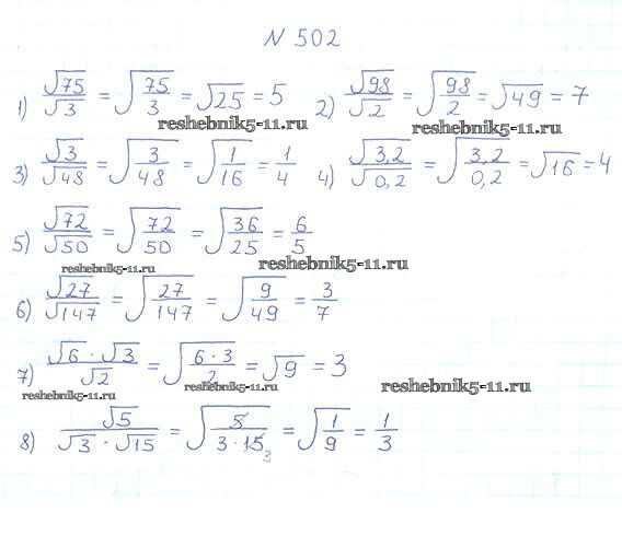 Готовая домашняя работа с ответами по Алгебре за 8 класс Мерзляк, Полонский, Якир Учебник Алгоритм успеха Вентана-граф 2016 ФГОС - §16. Свойства арифметического квадратного корня 502