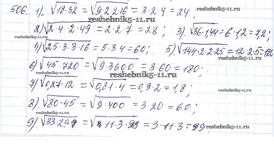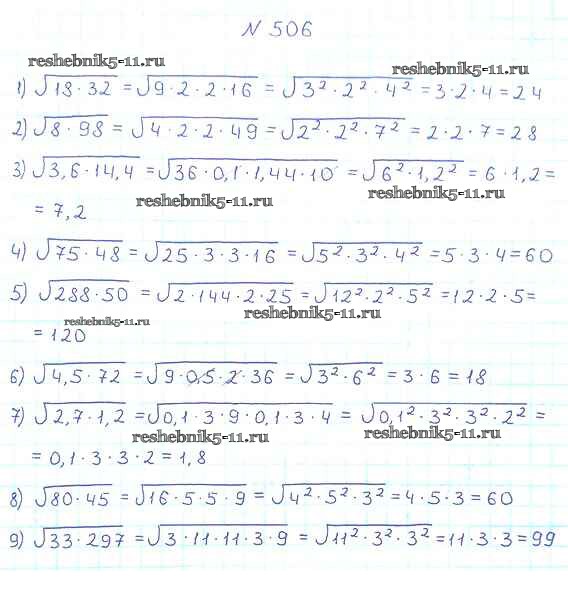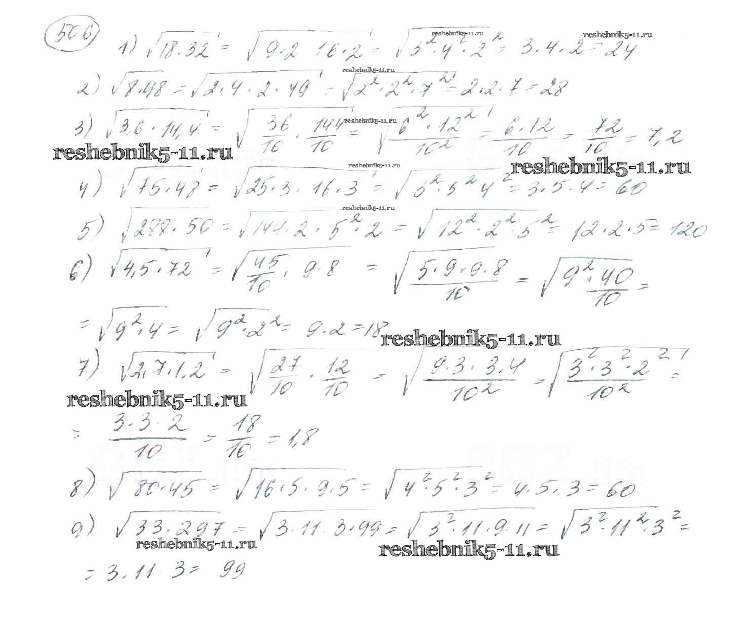 Готовая домашняя работа с ответами по Алгебре за 8 класс Мерзляк, Полонский, Якир Учебник Алгоритм успеха Вентана-граф 2016 ФГОС - §16. Свойства арифметического квадратного корня 506