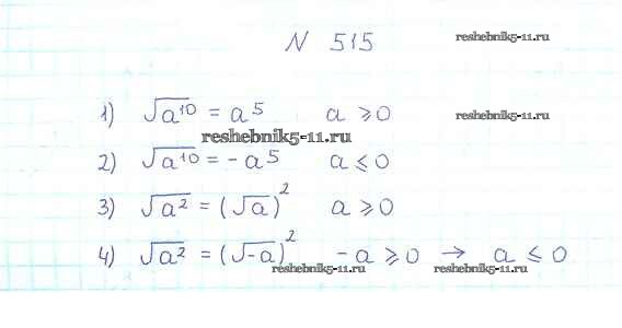 Готовая домашняя работа с ответами по Алгебре за 8 класс Мерзляк, Полонский, Якир Учебник Алгоритм успеха Вентана-граф 2016 ФГОС - §16. Свойства арифметического квадратного корня 515