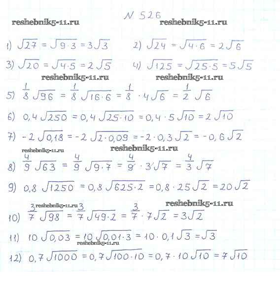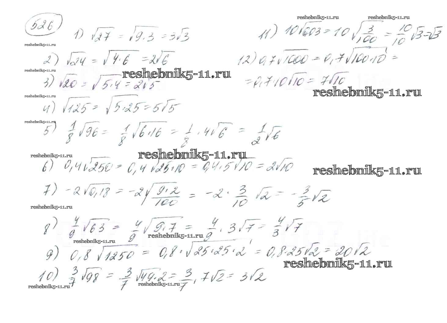 Готовая домашняя работа с ответами по Алгебре за 8 класс Мерзляк, Полонский, Якир Учебник Алгоритм успеха Вентана-граф 2016 ФГОС - §17. Тождественные преобразования выражений, содержащих арифметические квадратные корни 526