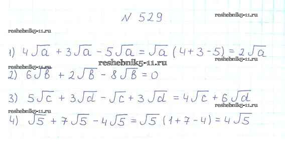 Готовая домашняя работа с ответами по Алгебре за 8 класс Мерзляк, Полонский, Якир Учебник Алгоритм успеха Вентана-граф 2016 ФГОС - §17. Тождественные преобразования выражений, содержащих арифметические квадратные корни 529