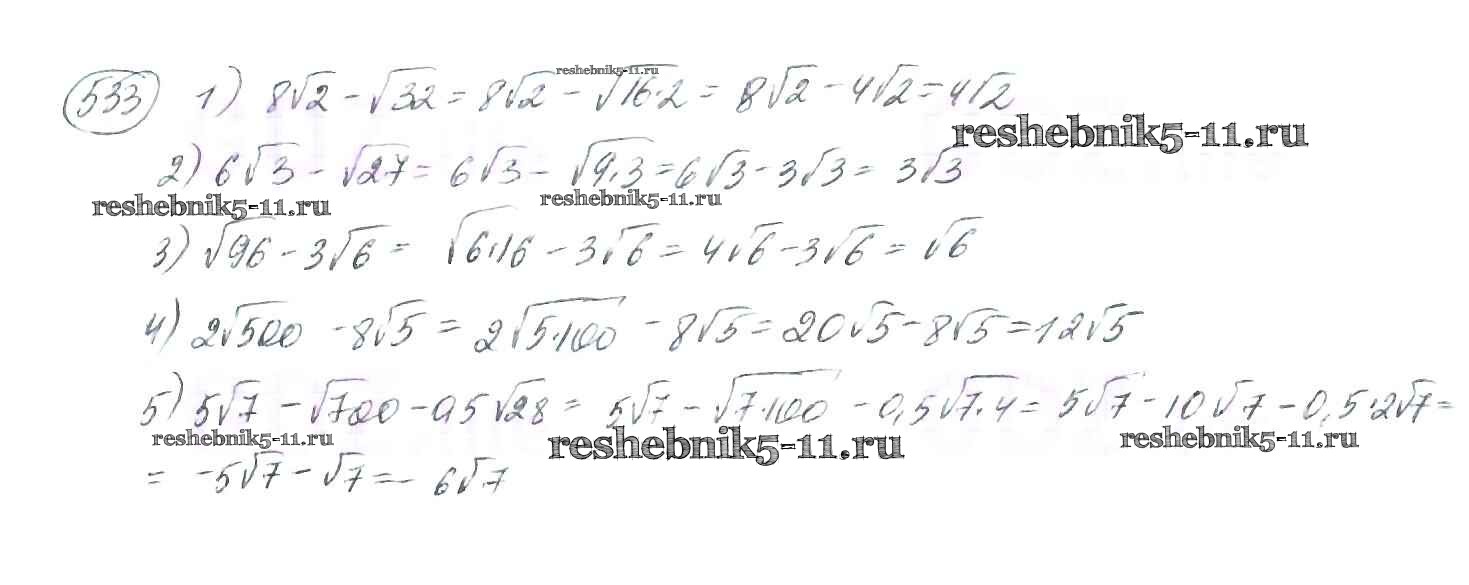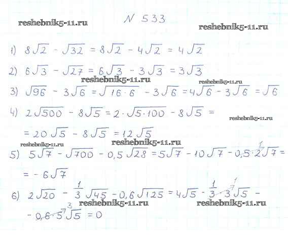 Готовая домашняя работа с ответами по Алгебре за 8 класс Мерзляк, Полонский, Якир Учебник Алгоритм успеха Вентана-граф 2016 ФГОС - §17. Тождественные преобразования выражений, содержащих арифметические квадратные корни 533