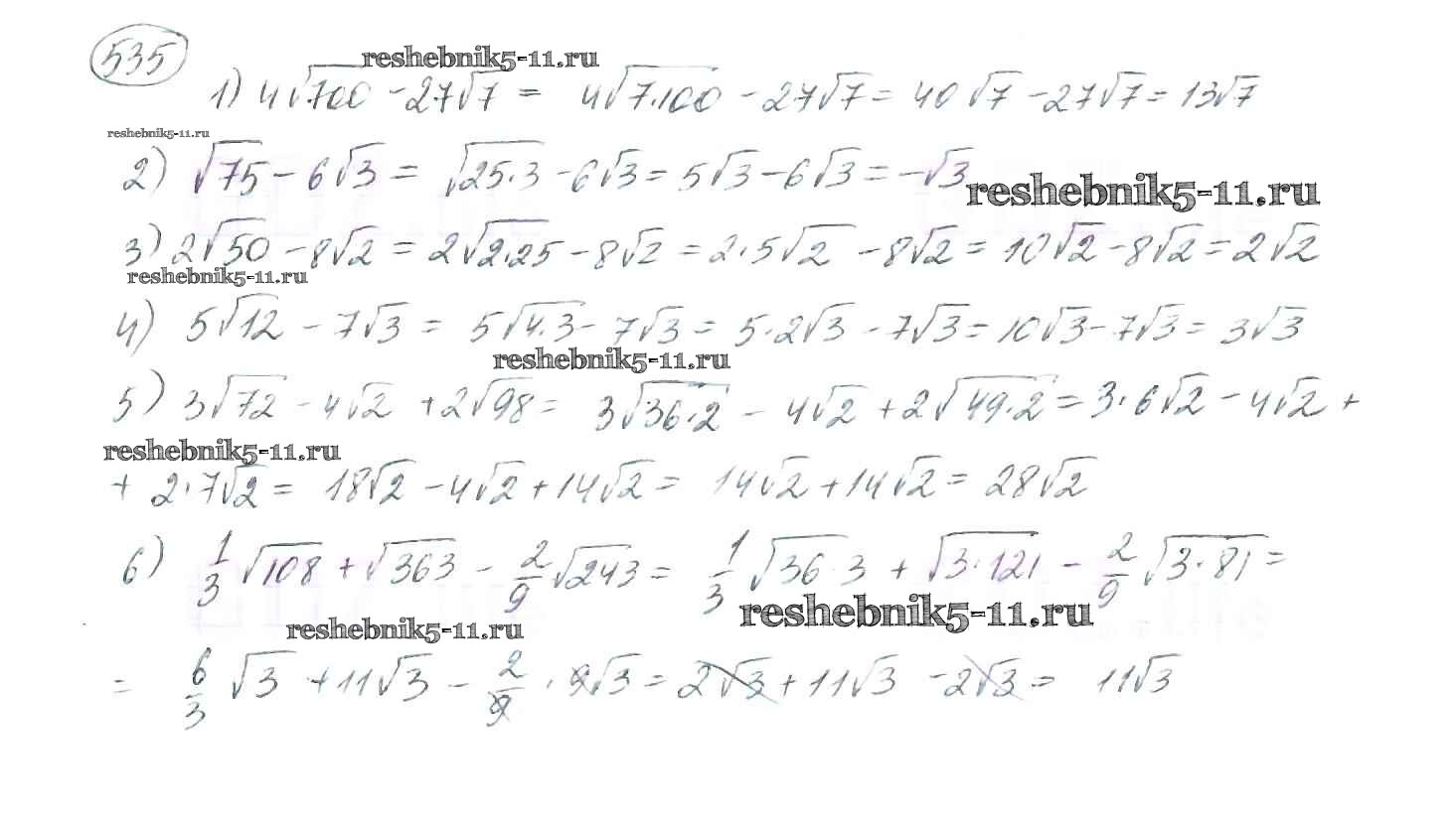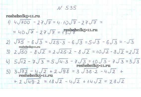 Готовая домашняя работа с ответами по Алгебре за 8 класс Мерзляк, Полонский, Якир Учебник Алгоритм успеха Вентана-граф 2016 ФГОС - §17. Тождественные преобразования выражений, содержащих арифметические квадратные корни 535