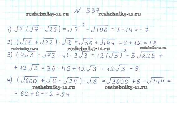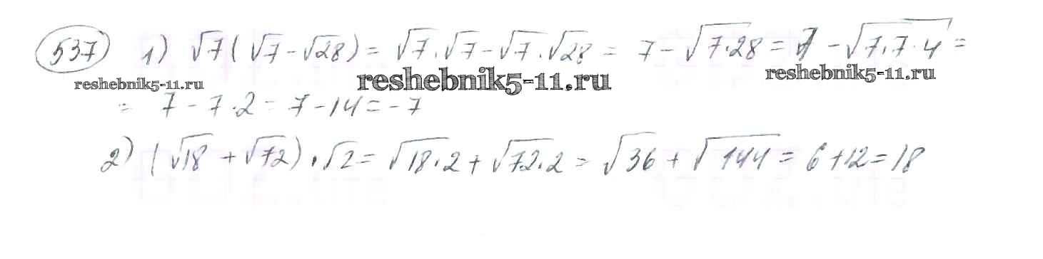 Готовая домашняя работа с ответами по Алгебре за 8 класс Мерзляк, Полонский, Якир Учебник Алгоритм успеха Вентана-граф 2016 ФГОС - §17. Тождественные преобразования выражений, содержащих арифметические квадратные корни 537