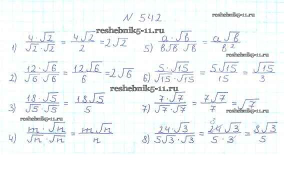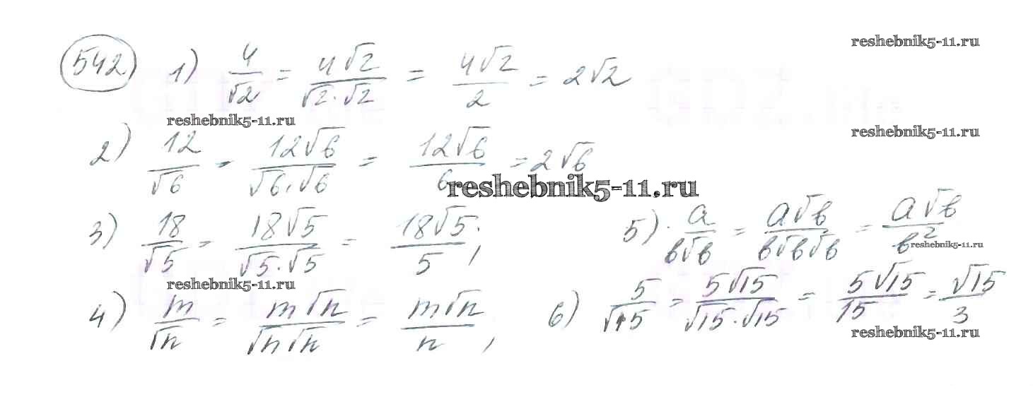 Готовая домашняя работа с ответами по Алгебре за 8 класс Мерзляк, Полонский, Якир Учебник Алгоритм успеха Вентана-граф 2016 ФГОС - §17. Тождественные преобразования выражений, содержащих арифметические квадратные корни 542