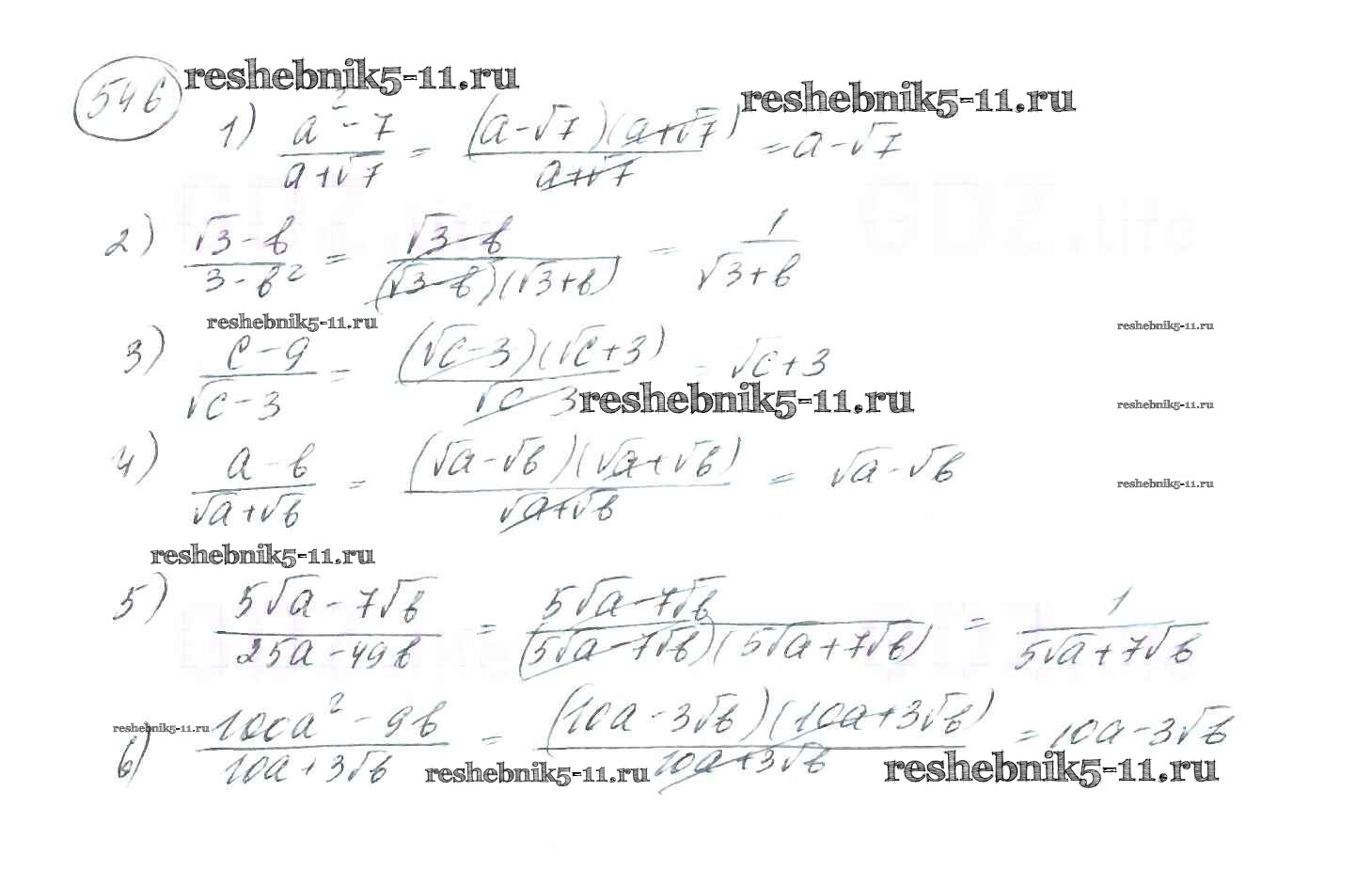 Готовая домашняя работа с ответами по Алгебре за 8 класс Мерзляк, Полонский, Якир Учебник Алгоритм успеха Вентана-граф 2016 ФГОС - §17. Тождественные преобразования выражений, содержащих арифметические квадратные корни 546