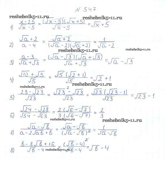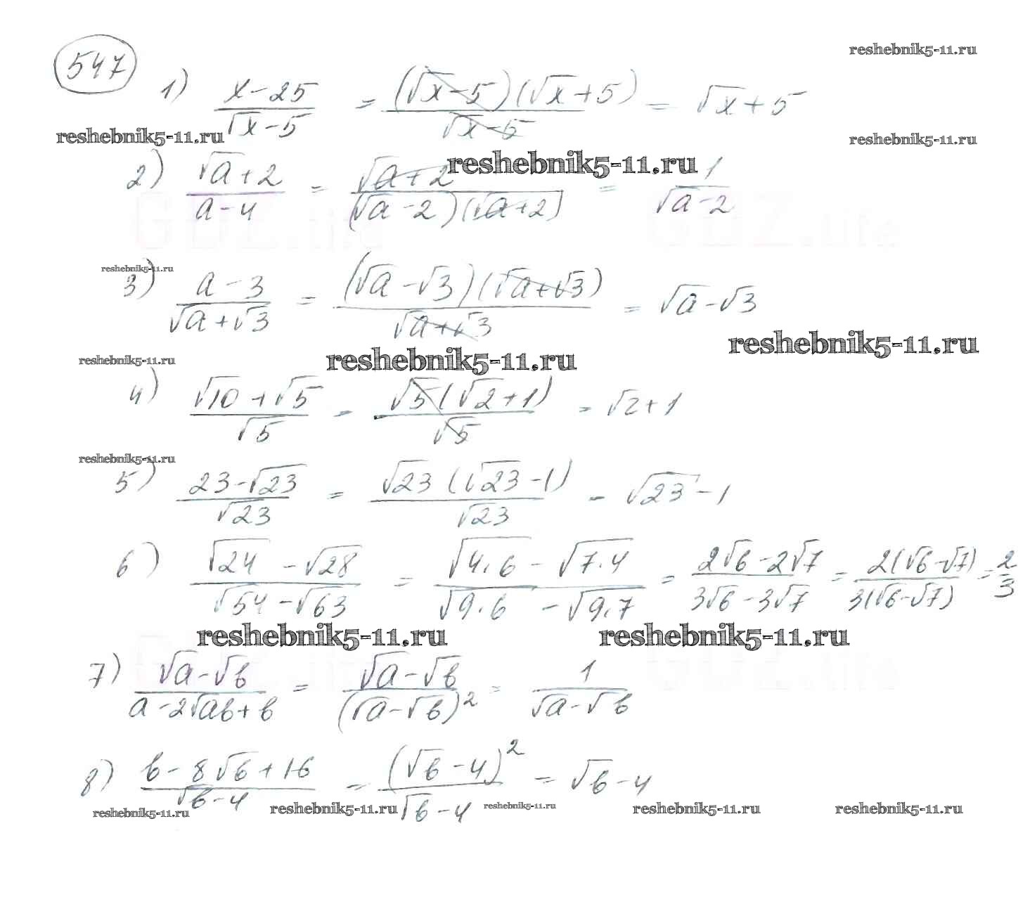 Готовая домашняя работа с ответами по Алгебре за 8 класс Мерзляк, Полонский, Якир Учебник Алгоритм успеха Вентана-граф 2016 ФГОС - §17. Тождественные преобразования выражений, содержащих арифметические квадратные корни 547