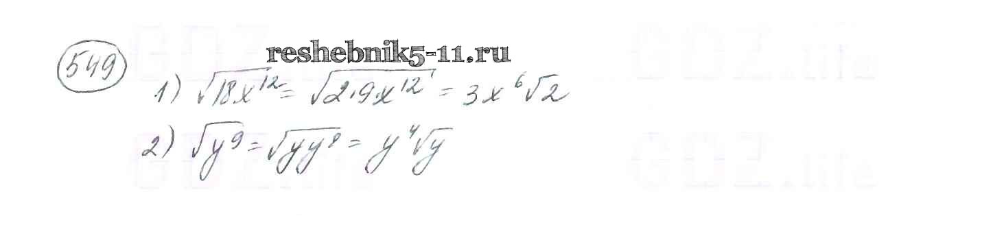 Готовая домашняя работа с ответами по Алгебре за 8 класс Мерзляк, Полонский, Якир Учебник Алгоритм успеха Вентана-граф 2016 ФГОС - §17. Тождественные преобразования выражений, содержащих арифметические квадратные корни 549