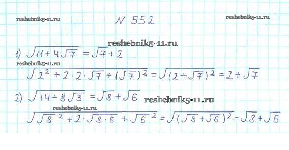 Готовая домашняя работа с ответами по Алгебре за 8 класс Мерзляк, Полонский, Якир Учебник Алгоритм успеха Вентана-граф 2016 ФГОС - §17. Тождественные преобразования выражений, содержащих арифметические квадратные корни 552