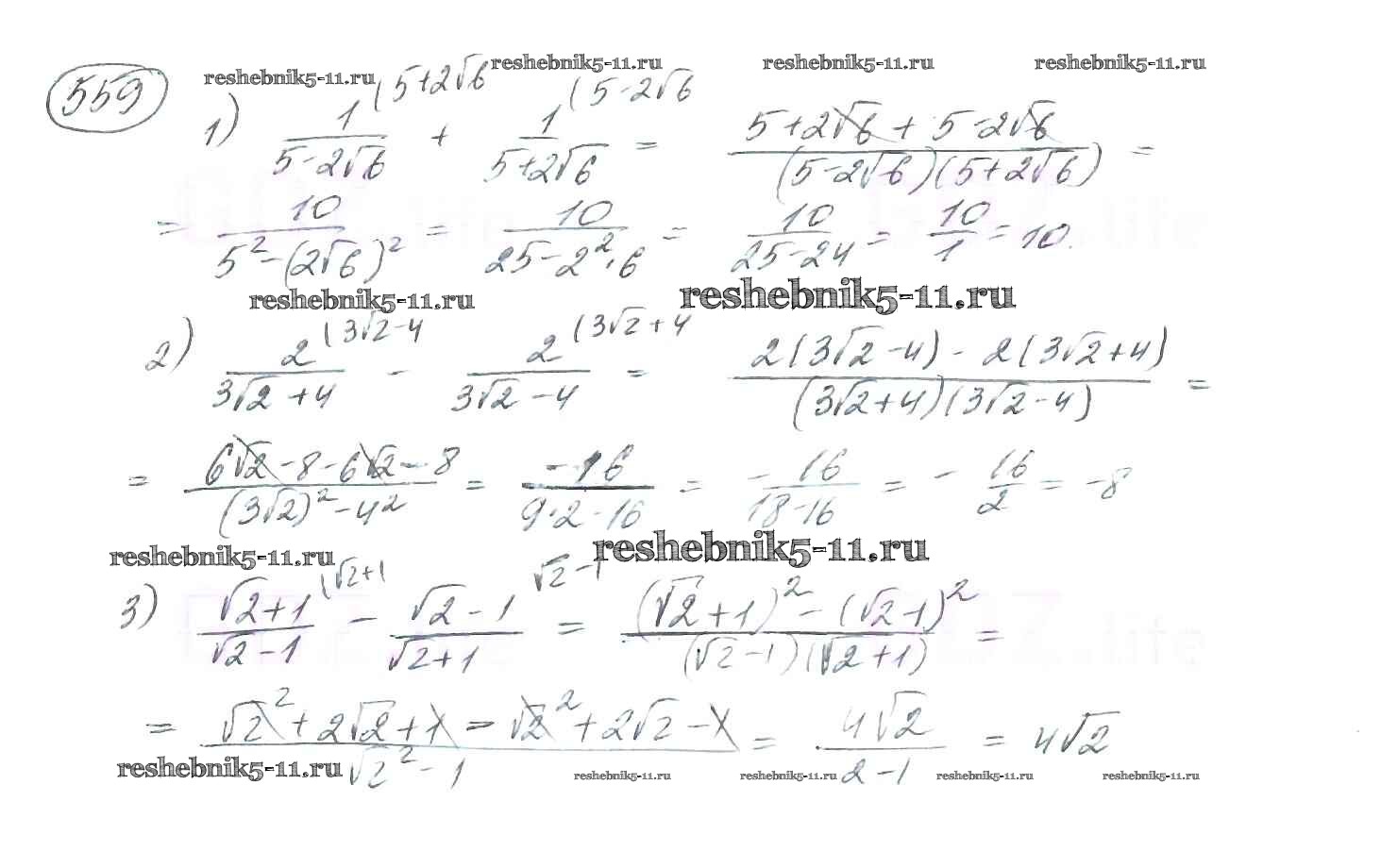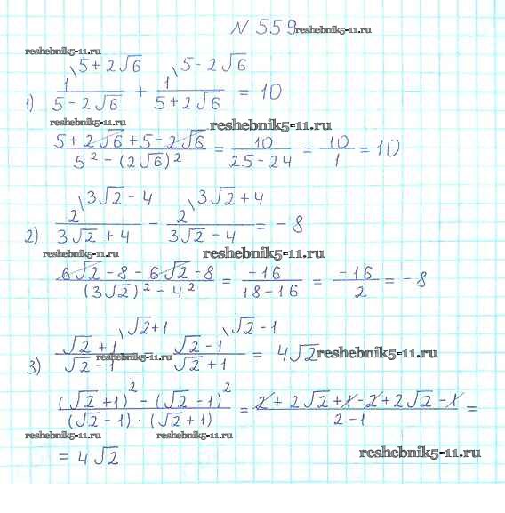 Готовая домашняя работа с ответами по Алгебре за 8 класс Мерзляк, Полонский, Якир Учебник Алгоритм успеха Вентана-граф 2016 ФГОС - §17. Тождественные преобразования выражений, содержащих арифметические квадратные корни 559