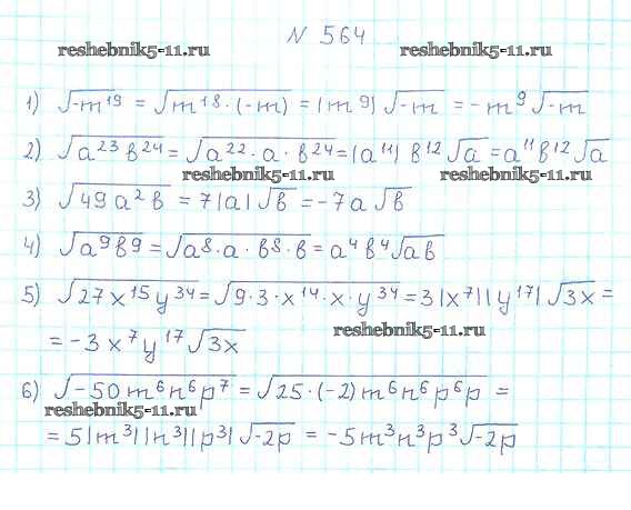 Готовая домашняя работа с ответами по Алгебре за 8 класс Мерзляк, Полонский, Якир Учебник Алгоритм успеха Вентана-граф 2016 ФГОС - §17. Тождественные преобразования выражений, содержащих арифметические квадратные корни 564