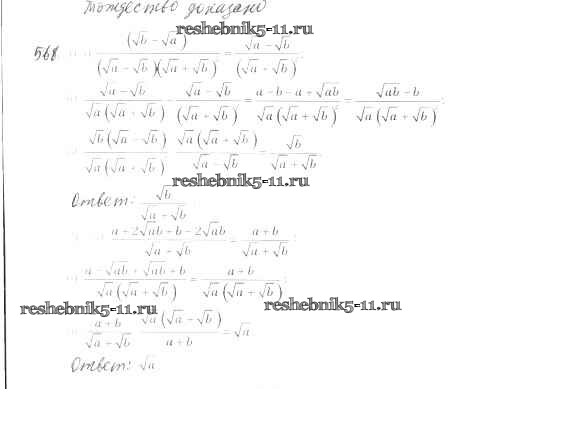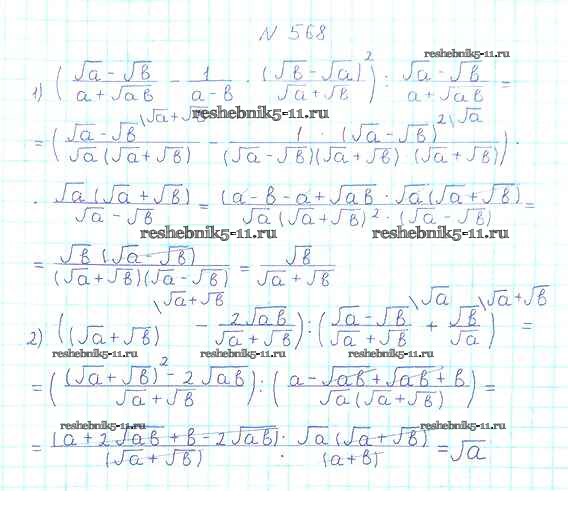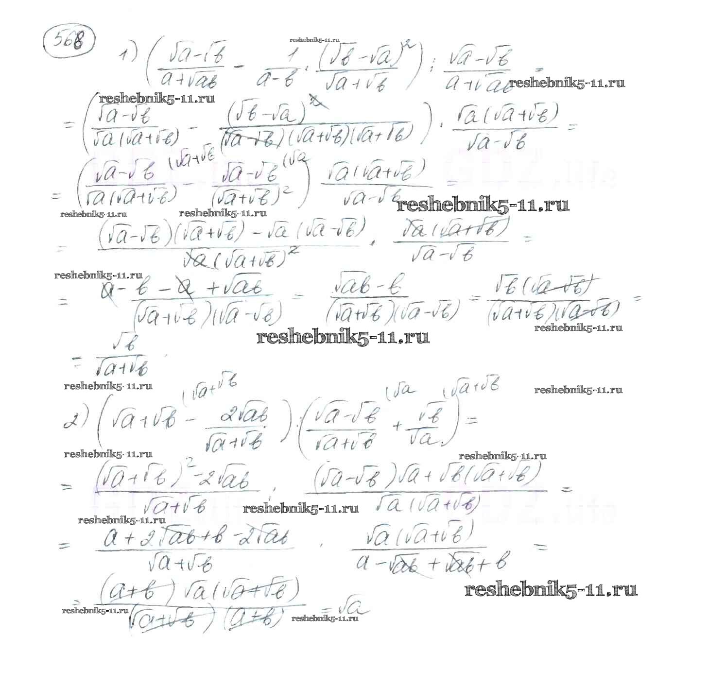 Готовая домашняя работа с ответами по Алгебре за 8 класс Мерзляк, Полонский, Якир Учебник Алгоритм успеха Вентана-граф 2016 ФГОС - §17. Тождественные преобразования выражений, содержащих арифметические квадратные корни 568