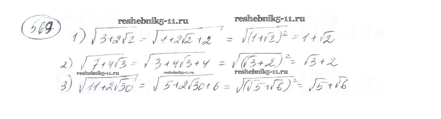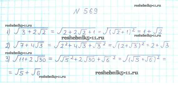 Готовая домашняя работа с ответами по Алгебре за 8 класс Мерзляк, Полонский, Якир Учебник Алгоритм успеха Вентана-граф 2016 ФГОС - §17. Тождественные преобразования выражений, содержащих арифметические квадратные корни 569