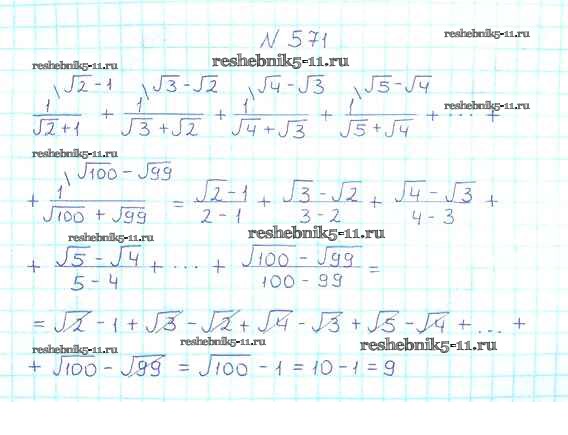 Готовая домашняя работа с ответами по Алгебре за 8 класс Мерзляк, Полонский, Якир Учебник Алгоритм успеха Вентана-граф 2016 ФГОС - §17. Тождественные преобразования выражений, содержащих арифметические квадратные корни 571