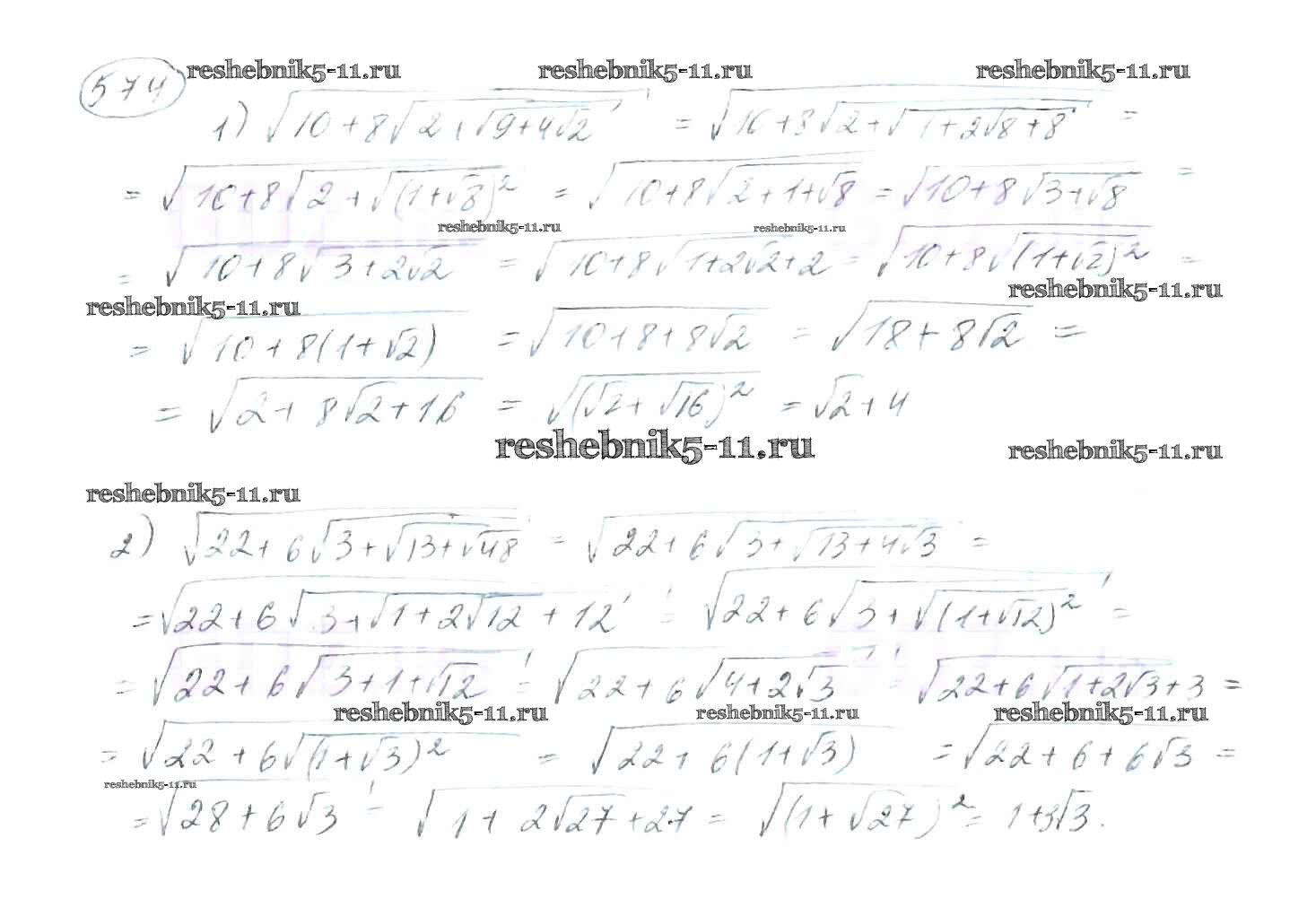 Готовая домашняя работа с ответами по Алгебре за 8 класс Мерзляк, Полонский, Якир Учебник Алгоритм успеха Вентана-граф 2016 ФГОС - §17. Тождественные преобразования выражений, содержащих арифметические квадратные корни 574