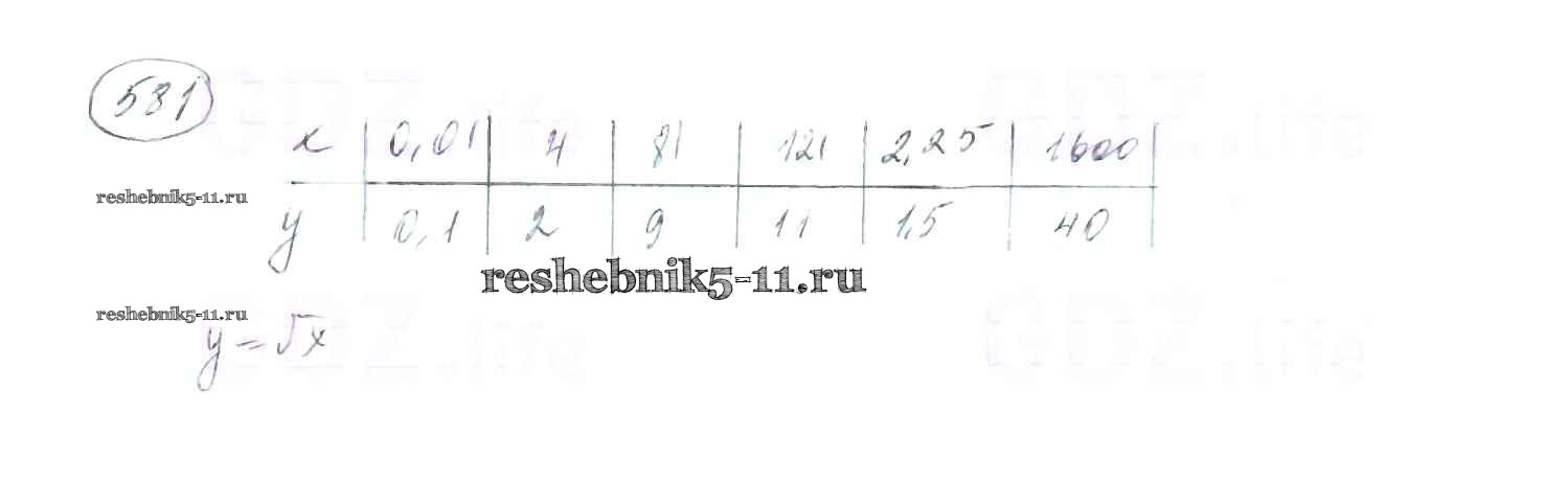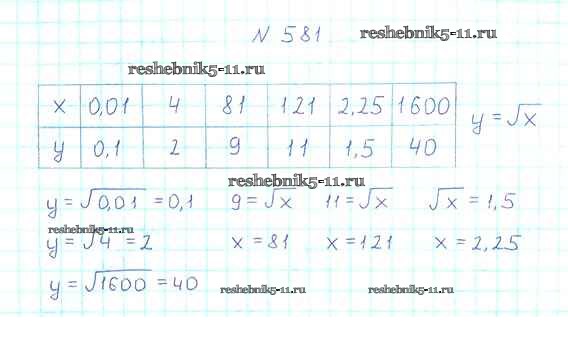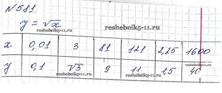 Готовая домашняя работа с ответами по Алгебре за 8 класс Мерзляк, Полонский, Якир Учебник Алгоритм успеха Вентана-граф 2016 ФГОС - §18. Функция y=√x 581