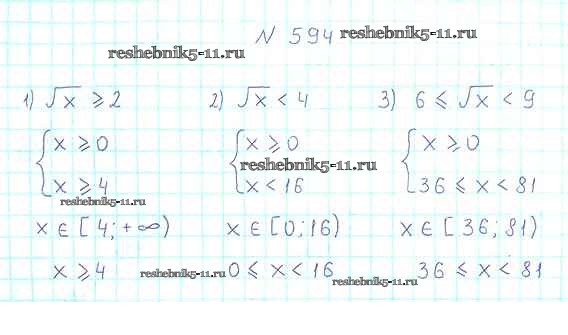 Готовая домашняя работа с ответами по Алгебре за 8 класс Мерзляк, Полонский, Якир Учебник Алгоритм успеха Вентана-граф 2016 ФГОС - §18. Функция y=√x 594