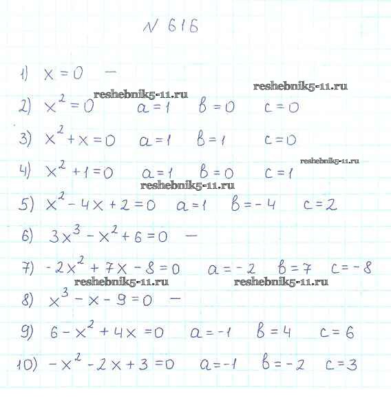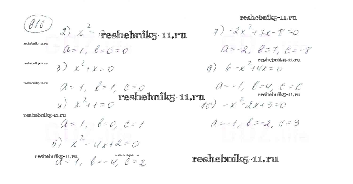 Готовая домашняя работа с ответами по Алгебре за 8 класс Мерзляк, Полонский, Якир Учебник Алгоритм успеха Вентана-граф 2016 ФГОС - §19. Квадратные уравнения. Решение неполных квадратных уравнений 616