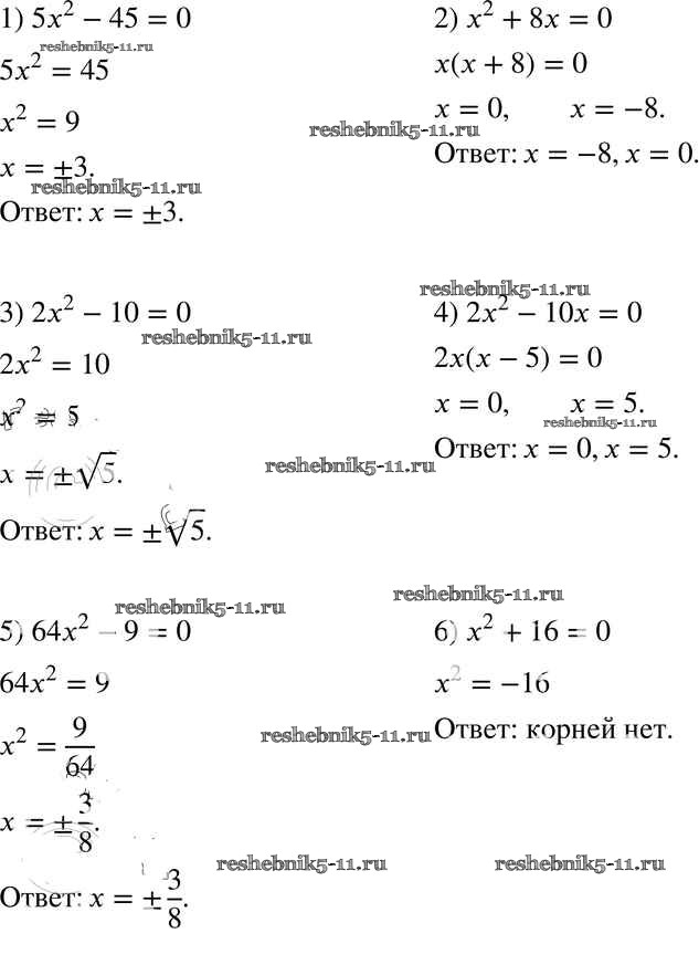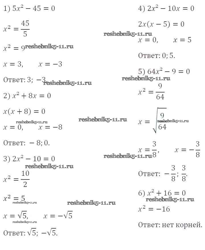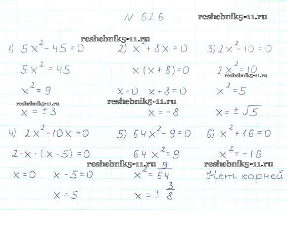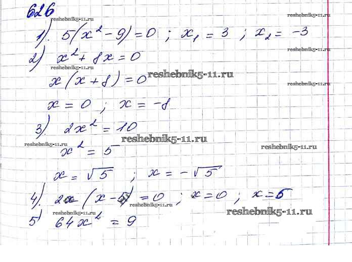 Готовая домашняя работа с ответами по Алгебре за 8 класс Мерзляк, Полонский, Якир Учебник Алгоритм успеха Вентана-граф 2016 ФГОС - §19. Квадратные уравнения. Решение неполных квадратных уравнений 626