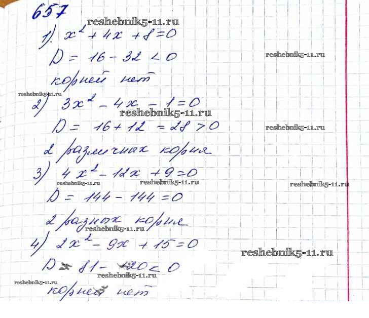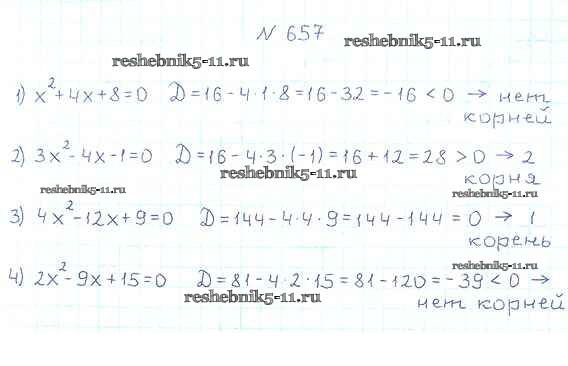Готовая домашняя работа с ответами по Алгебре за 8 класс Мерзляк, Полонский, Якир Учебник Алгоритм успеха Вентана-граф 2016 ФГОС - §20. Формула корней квадратного уравнения 657