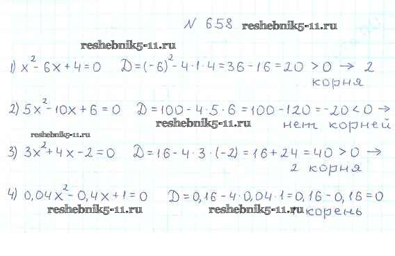 Готовая домашняя работа с ответами по Алгебре за 8 класс Мерзляк, Полонский, Якир Учебник Алгоритм успеха Вентана-граф 2016 ФГОС - §20. Формула корней квадратного уравнения 658