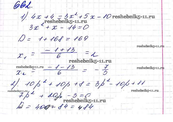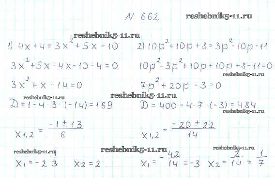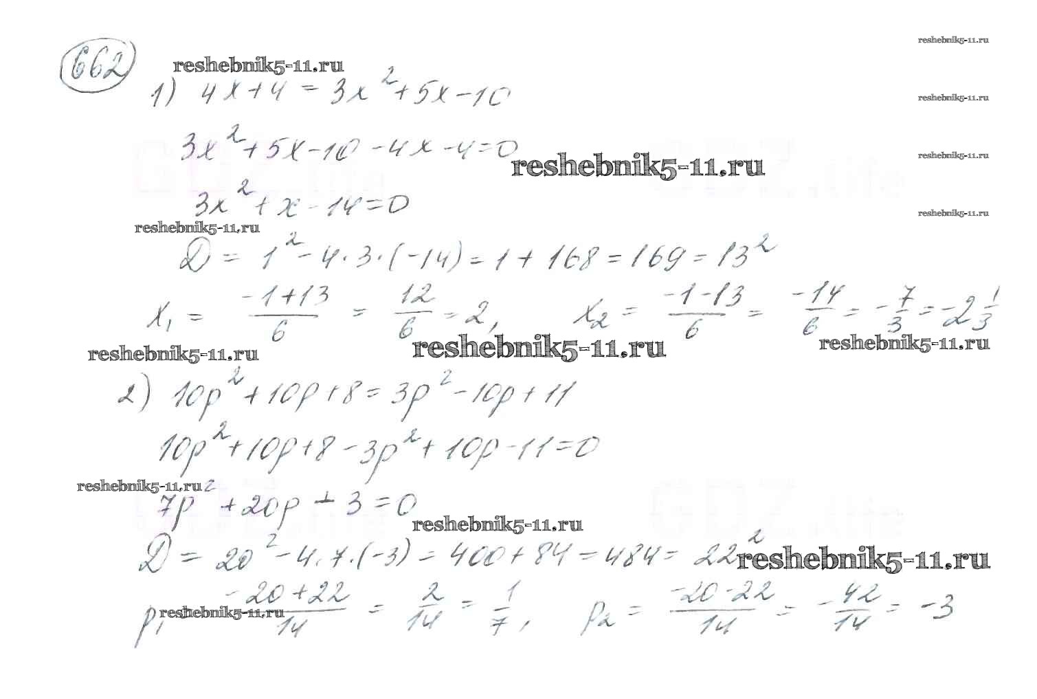 Готовая домашняя работа с ответами по Алгебре за 8 класс Мерзляк, Полонский, Якир Учебник Алгоритм успеха Вентана-граф 2016 ФГОС - §20. Формула корней квадратного уравнения 662