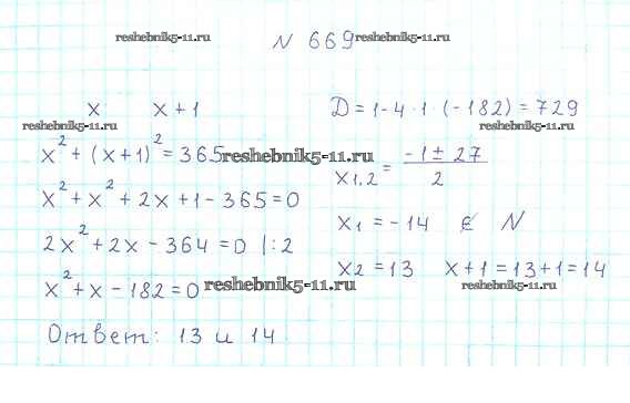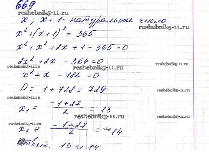 Готовая домашняя работа с ответами по Алгебре за 8 класс Мерзляк, Полонский, Якир Учебник Алгоритм успеха Вентана-граф 2016 ФГОС - §20. Формула корней квадратного уравнения 669